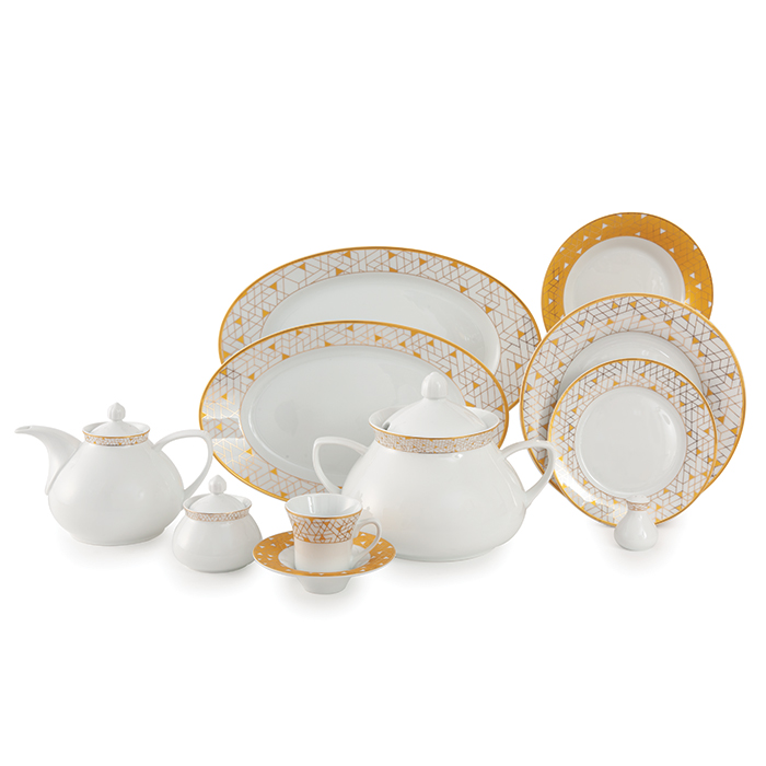 سرویس چینی 108 پارچه زرین ژئومتریکال طلایی