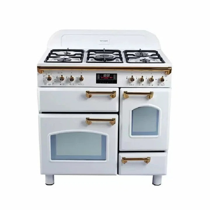 اجاق گاز پنج شعله چهار فر تاکنوگاز سری فالکون مدل دسته شیر و دستگیره طلایی
