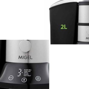 جنس پارچ مخلوط کن 1.5 لیتری، شیشه ای شفاف است که به درپوش شکرریز نیز مجهز گردیده تا بتوان در صورت استفاده از مخلوط کن، مواد افزودنی را به آن اضافه کرد. سیستم حفاظت در برابر گرمای بیش از حد موتور و میکرو سوئیچ ایمنی از دیگر مشخصه های آبمیوه گیری میگل مدل GPJ 802 به شمار می رود.
