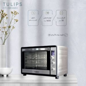 آون توستر تولیپس مدل OT-A3806BD، محصولی دیگر از این کمپانی صاحب نام است که با فناوری های نوین به بازار عرضه شده. آون توستر تولیپس مدل OT-A3806BD بدنه استیل مستحکم و بادوام موتوری با توان گرمایشی 1600 وات را در خود جای داده و شیشه دو جداره مقاوم در برابر حرارت، به صورت شفاف ساخته شده تا نظارت بر روند پخت راحتتر صورت گیرد.