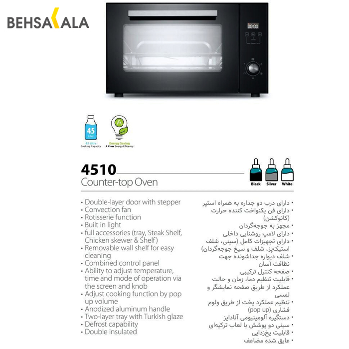 موتور داخلی آون توستر تکنو مکس مدل 4510 دارای قدرت 1400 وات است.