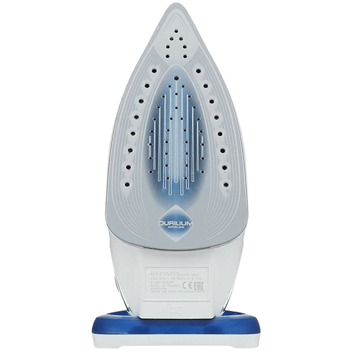 اتو بخار تفال مدل FV5715 به کفی فوق العاده نازک با فناوری Durilium Airglide مجهز شده که برای سر خوردن آسان تر و استفاده از قدرت بخار بیشتر است تا اتوکشی راحت تر و کارآمدتر گردد و همچنین سوراخ های بخار 100٪ فعال در کف، ایجاد حداکثر توزیع بخار و پوشش را تضمین می کند.