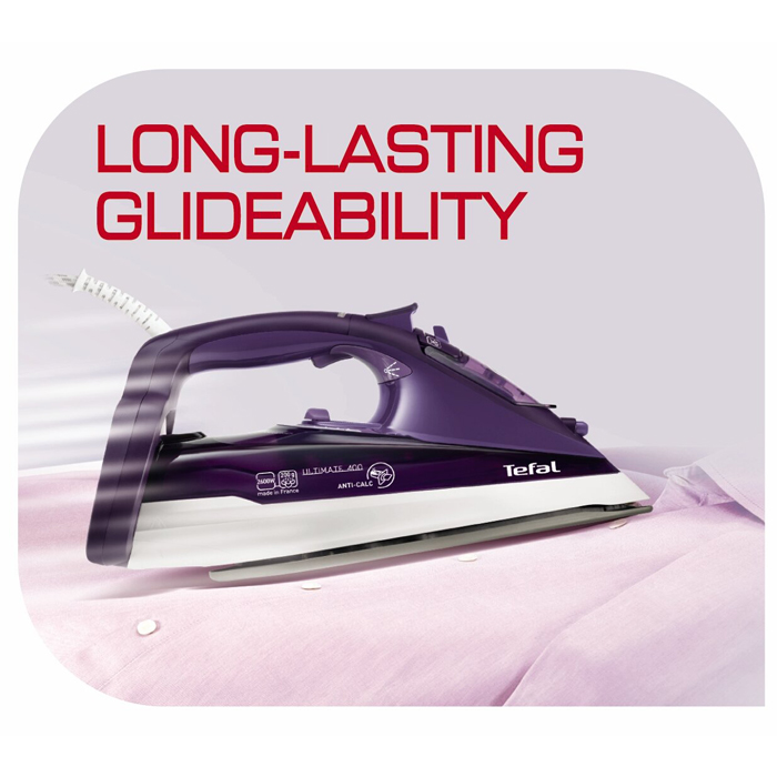پوشش کفی اتو بخار تفال مدل FV9640 از جنس سرامیک گلیس گلاید پروتکت بوده که به راحتی بر روی پارچه می لغزد و قابلیت ضد رسوب و بخاردهی پیشرفته نیز برای آن در نظر گرفته شده است.
