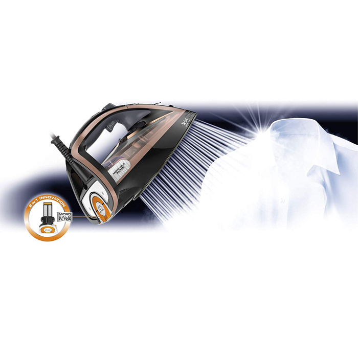 اتو بخار تفال مدل FV9845 در حالت پیوسته تا میزان 60 گرم در دقیقه بخار تولید می کند و در حالت بخاردهی لحظهای و با فشار ناگهانی بخار به مقدار زیاد، این میزان تا 260 گرم در دقیقه هم می رسد که عمیق ترین چروک ها را از بین می برد.