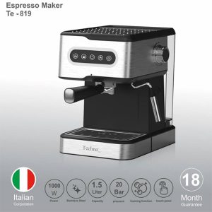 اسپرسو ساز تکنو مدل Te-819 با ظاهری زیبا و منحصر به فرد طراحی شده و با توجه به کیفیت ساختی که دارد، برای مصارف خانگی و یا کافه های کوچک انتخاب بسیار مناسبی می باشد. اسپرسو ساز تکنو مدل Te-819 با توان 1000 وات و فشار پمپ بخار 20 بار قادر است، در مدت زمان کوتاهی انواع نوشیدنی هایی همچون اسپرسو، کاپوچینو و لاته را با حفظ طعم واقعی تهیه نماید.