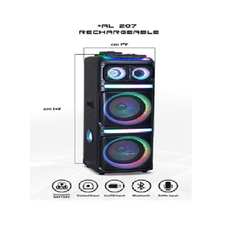 البته اسپیکر بلوتوثی مکسیدر مدل AL207-APL از دستگیره چمدانی و چرخ برخوردار است که به شما این امکان میدهد تا بتوانید این اسپیکر را به آسانی حمل نموده و در تمامی مراسمات خود از این محصول استفاده نمایید. اسپیکر بلوتوثی مکسیدر مدل AL207-APL به سبب ورودی اپتیکال و کواکسیالی که دارد سبب شده تا شما بتوانید تلویزیون منزلتان را به آن متصل نمایید. همچنین وجود قابلیت کارائوکه در اسپیکر بلوتوثی مکسیدر مدل AL207-APL سبب شده تا شما بتوانید صدای خواننده را به آسانی حذف نموده و در تتبجه خودتان با موسیقی هوخوانی نمایید.