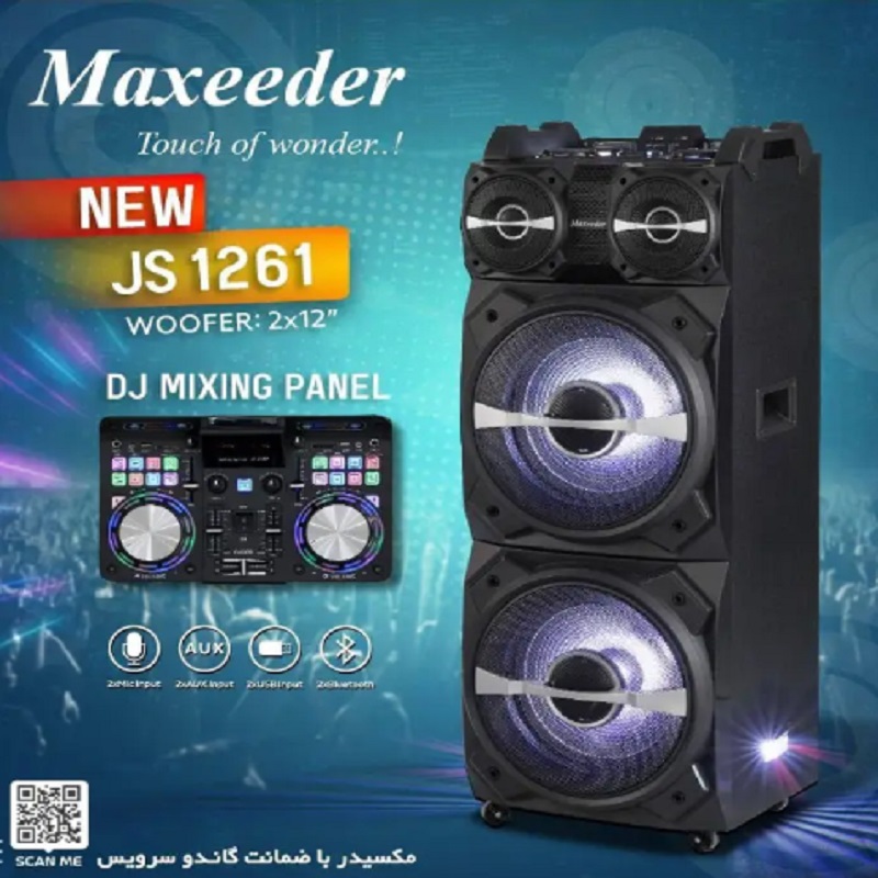 از ویژگی های اسپیکر بلوتوثی مکسیدر مدل JS1261 دارا بودن 2 عدد ساب 12 اینچی با قدرت 39000 وات می توان اشاره کرد که نشان از کیفیت حیرت انگیز و بی نظیر و بیس صدای قوی اسپیکر بلوتوثی مکسیدر مدل JS1261 می باشد. از دیگرمزایای آن به ریموت کنترل هوشمند نیز می توان اشاره کرد که از راه دور به راحتی تنظیمات مورد نظر خود را بر روی دستگاه اعمال میکند.