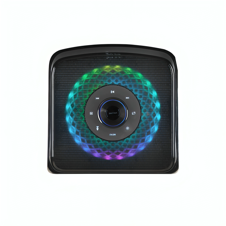 طراحی و نورپردازی چشمگیر این اسپیکر مجهز به نورپردازی چرخشی دور سابووفر و نور رنگی بالای اسپیکر است که جلوهای زیبا به محیط اضافه میکند. طراحی حرفهای آن همراه با دو سابووفر 10 اینچی و تیوتر صدایی عمیق و واضح را ارائه میدهد.