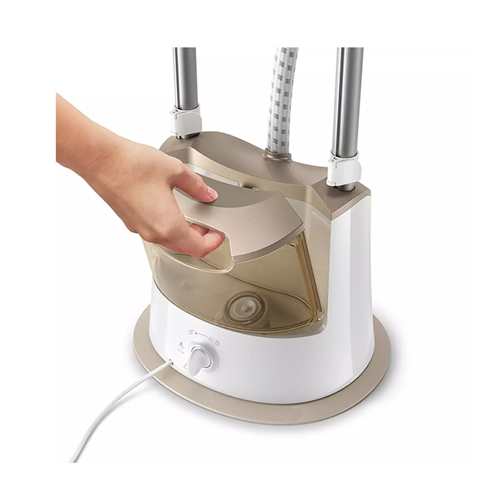 برای مخزن بزرگ قابل جداشدنی 1.4 لیتری در مقایسه با مدل های قبلی، بزگتر می باشد که ما را از پر کردن مکرر مخزن بی نیاز می کند. همچنین ارتفاع این اتوی ایستاده قابل تنظیم بوده و می توان برخی از لباس ها مانند پیراهن ، لباس و شلوار را با چوب لباسی که به همراه محصول رائه شده، به از آن آویزان نمود. همچنین فیلیپس برای محافظت بیشتر در هنگام بخار، دستکشی در داخل بسته گنجانده است.