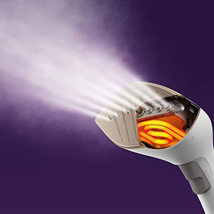 در طراحی بخارگر فیلیپس مدل GC628 از تکنولوژی Dual Heating استفاده شده است، این تکنولوژی موجب میشود تا نفوذ بخار به لایههای پارچه به صورت قدرتمند صورت بگیرد و سختترین چروکهای شما به آسانی رفع بشود.
