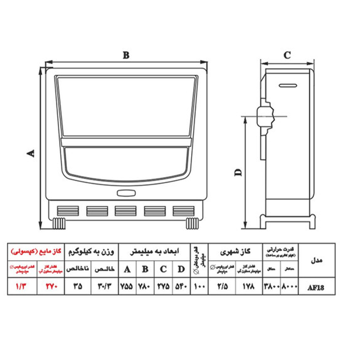 بخاری گازی نیک کالا مدل آفتاب AF18