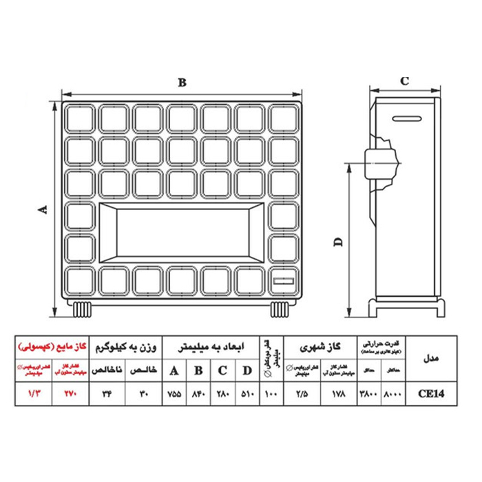 بخاری گازی نیک کالا مدل سرامیکی CE14