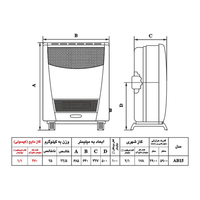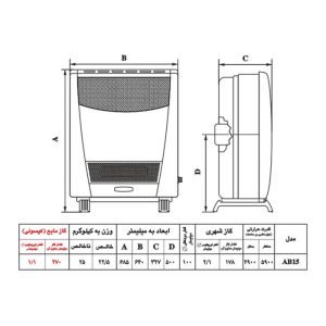 بخاری گازی نیک کالا مدل ناهید AB15-R