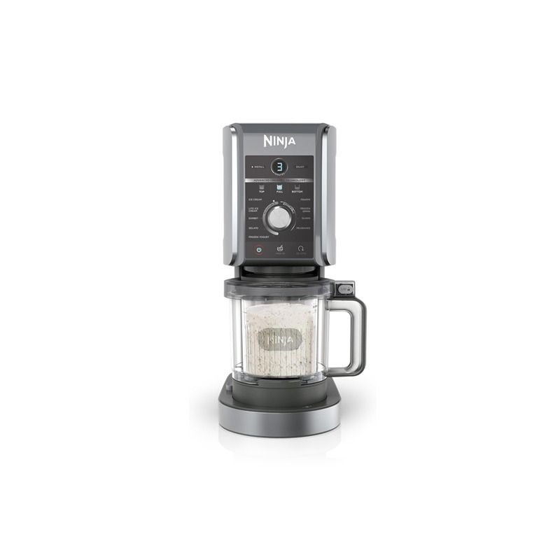 بستنی ساز نینجا مدل NC501 یک دستگاه حرفهای و پیشرفته برای تهیه انواع بستنی و دسرهای یخی خانگی است که با توان مصرفی ۸۰۰ وات و ظرفیت ۲۴ اونس (حدود ۷۰۰ میلیلیتر) طراحی شده است. این دستگاه با فناوری منحصر به فرد Creamify و موتورهای دوگانه درایو، ذرات یخ را به صورت یکنواخت و سریع به بستنیهای خامهای، ژلاتو، سوربت و نوشیدنیهای یخزده تبدیل میکند. NC501 دارای ۱۱ برنامه خودکار مختلف است که امکان تهیه انواع دسرهای یخی مانند بستنی، میلکشیک، اسلوشی، فراپه و ماست یخزده را به راحتی فراهم میآورد.