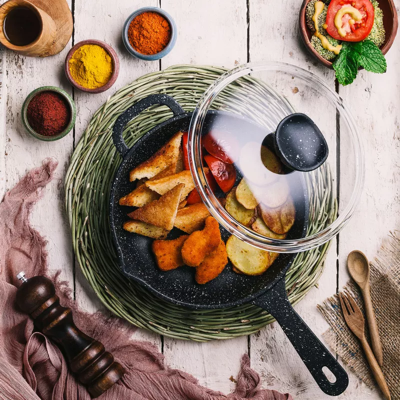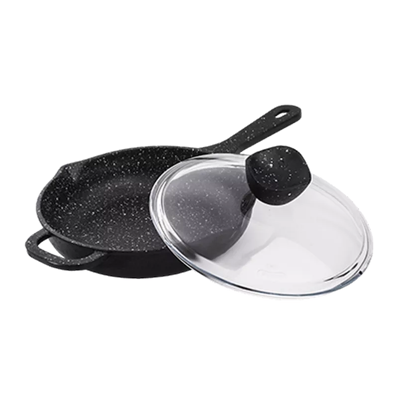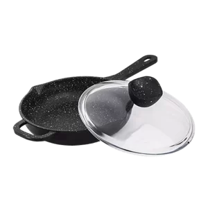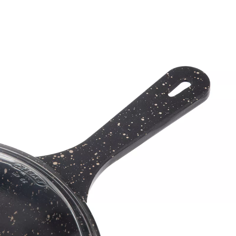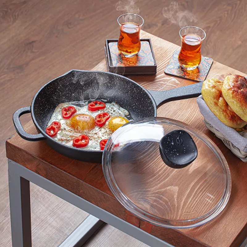 تابه تکدسته چدنی نالینو مدل Enzo سایز 22 با درب پیرکس عرضه میشود. انزو دارای یک دسته بلند و یک دسته کوتاه است.