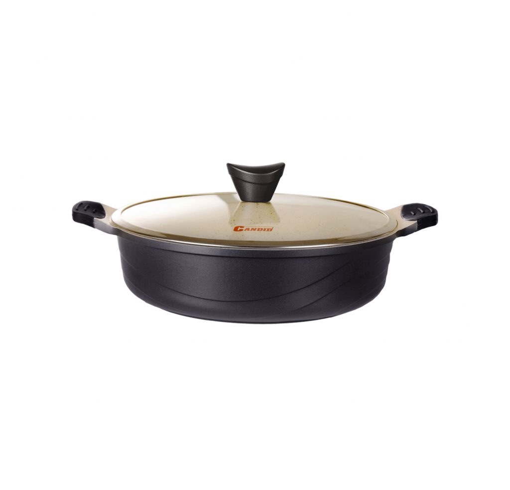 تابه دودسته اوشن کاندید آلومینیومی دایکست شده کاندید به دلیل عدم تماس مستقیم مواد غذایی با آلومینیوم و با بهره گیری از پوشش های مقاوم تفلون گرانیت سرامیک و بایو گرانیت از بهداشتی ترین ظروف پخت و پز محسوب می گردند.