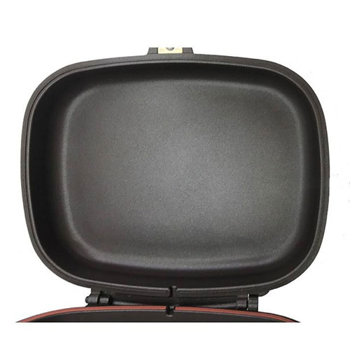 امکان پخت غذا بدون ریختن روغن, جنس تابه: روکش سه لایه کراتینی, جنس کف: چندلایه سرامیک تفلون, دارای قفل مغناطیسی جهت محکم شدن دو سطح تابه, شستشو آسان