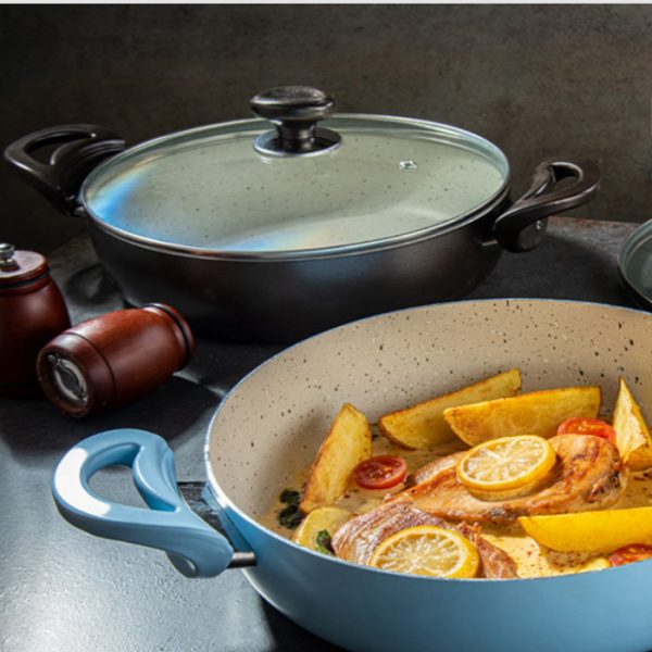 تابه عروس مدل پارمیس سایز ۳۰ دارای دسته های فیزیکی است که به شما امکان می دهد بدون نگرانی از سوختن دسته ها، آن ها را روی حرارت مستقیم در فر قرار دهید جنس بدنه تابه عروس مدل پارمیس سایز ۳۰ آلومینیوم در کنار روکش گرانیت و ساختار بدنه کششی این ظروف را بسیار قابل اعتماد و با کیفیت می کند.