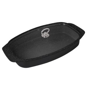 روکش این تابه فر بیضی تک ظرف مدل با درب پیرکس سایز 40 از گرانیت ساخت آلمان تهیه شده که از کیفیت بالایی برخوردار و همچنین برای سلامتی بدن مضرر نمیباشد. تابه فر تک ظرف سایز 40 مناسب برای خانواده 4 تا8 نفره و قابل شستشو در ماشین ظرفشویی میباشد.