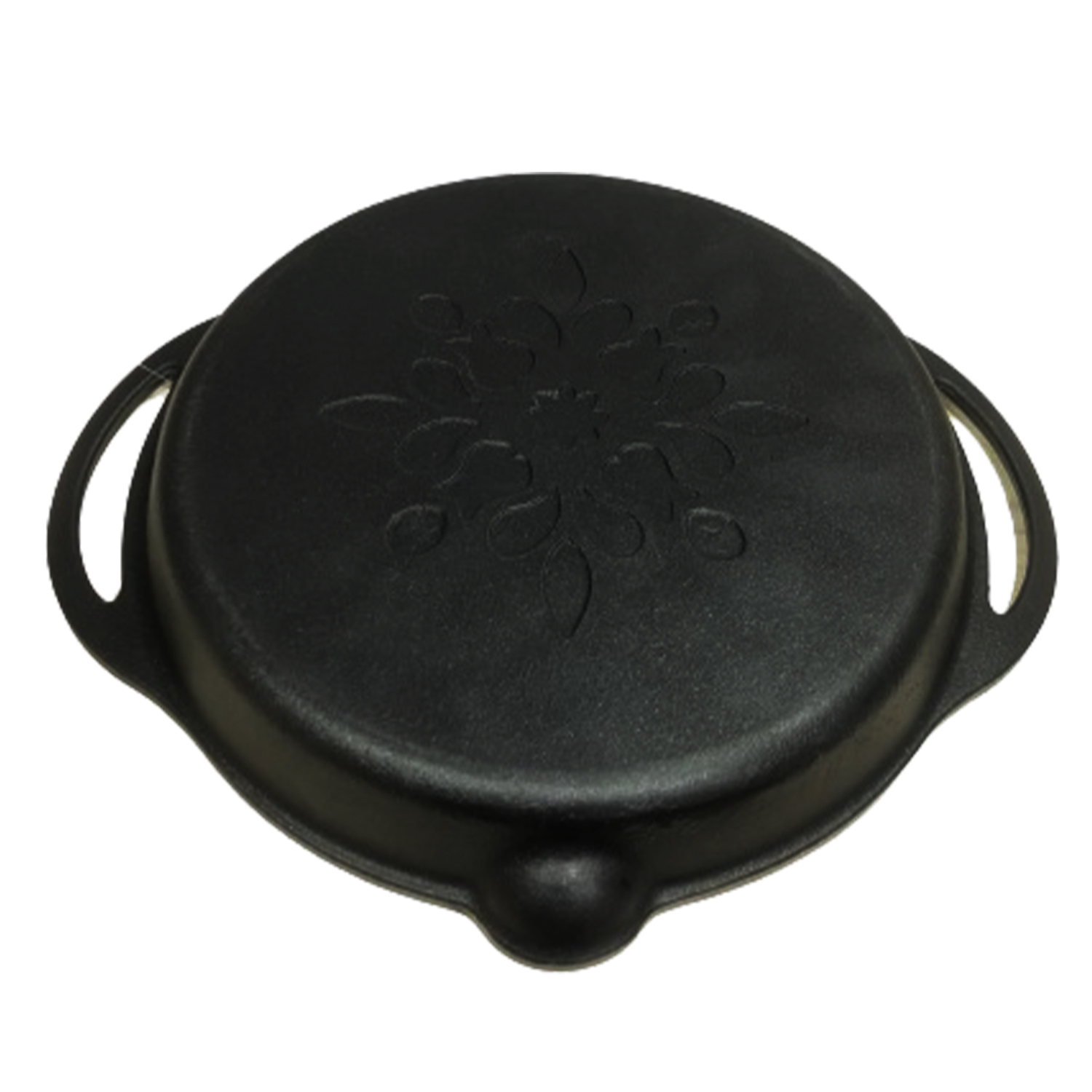 تابه دارای دو دسته متصل و یک تکه بوده که از جنس خود چدن است. وزن خالص تابه چدنی بدون بسته بندی 3240 گرم است. ابعاد 8101 به طول با دسته 36.5 و قطر 30 سانتیمتر است.