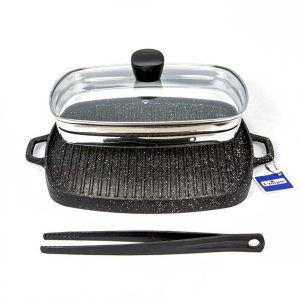 تابه گریل چدنی یونیک مربع درب دار 32 سانتیمتری UN-6009