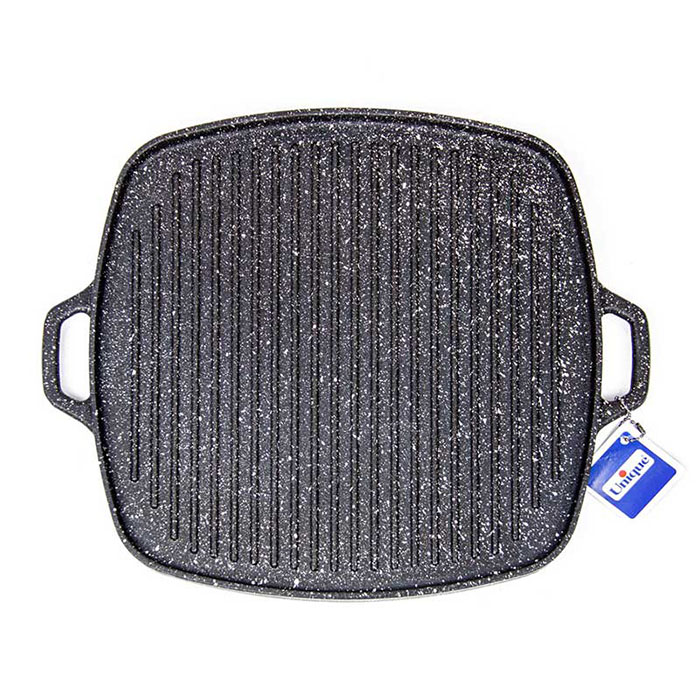 تابه های گریل چدنی یونیک تنوع در ابعاد و فرم زیادی داند، این تابه ها به شکل دایره، مربع، مستطیل و یا بیضی هستند. همچنین امکاناتی چون درب شیشه ای، انبر و زیره چوبی از ویژگی های آنها است. تابه گریل چدنی یونیک مربع درب دار 32 سانتیمتری UN-6009 دارای درب شیشه ای با لبه 5 سانتیمتری است.به خاطر ابعاد بزرگ و فرم مریعی که دارد بسیار مورد علاقه خریداری قرار می گیرد.