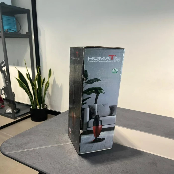 جاروبرقی پرتابل هوماتیس مدل V-10 با توان قدرتی 800 وات، که به صورت ایستاده و دستی برای هر مکانی قابل استفاده است. جاروبرقی پرتابل هوماتیس مدل V-10