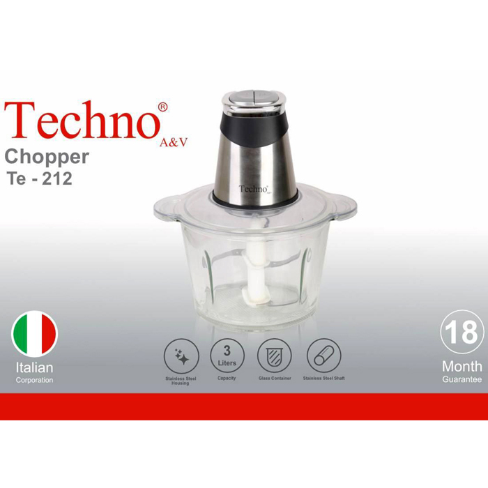 خردکن تکنو مدل Te-212 با گنجایش 3 لیتر ارائه شده که می توان با اطمینان خاطر برای مخلوط کردن موادغذایی، سبزیجات و یا میوه های بدون هسته از آن استفاده نمود.