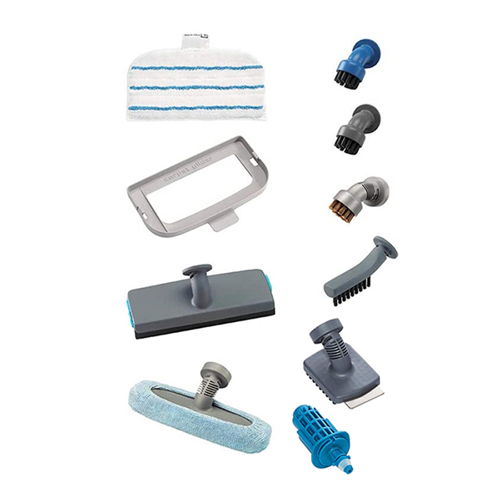 وجود 10 تکه لوازم جانبی از جمله 2 عدد نازل برس دار، حوله مخصوص نازل، نازل برس دار از جنس مس، قطعه مخصوص تمیز کردن فرش، نازل برس دار مخصوص فاصله بین کاشی و سرامیک و نازل پارویی امکان استفاده از این زمین شوی بر روی انواع سطوح را به آسانی مهیا کرده است.