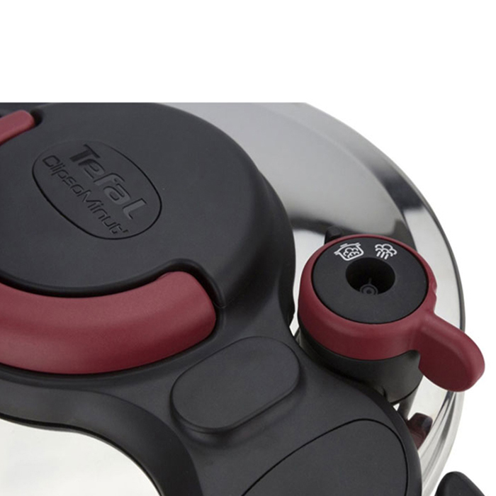 درب این محصول اهرمی است و باز و بست کردن آن با یک دست امکان پذیر می باشد.زودپز تفال مدل Clipso Minut Easy P4624766 دارای 5 سیستم امنیتی است که شما را از نگرانی خارج نشدن بخار و منفجر شدن زودپز راحت می کند.