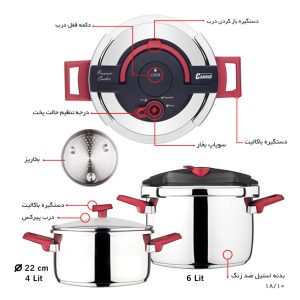زودپز دوقلو کاندید مدل هلیوس زودپز های دوقلو که به آنها 2 تایی هم گفته می شود 2 دیگ و یک در اصلی مخصوص زودپز و یک در پیرکس دارند که بر روی یکدیگر می توانند قرار بگیرند. در آشپزخانه لوازم بسیاری وجود دارد که مورد نیاز هر بانوی ایرانی در حین پخت و پز غذا میباشد. زودپز دوقلو کاندید مدل هلیوس کلیپسی یکی از لوازمهایی است که مورد توجه بانوان ایرانی قرار گرفته است. زودپز دوقلو کاندید مدل هلیوس با استفاده از فشار بالای بخار آب منجر به پخته شدن سریع مواد غذایی میشود. همان طور که از اسمش پیداست مواد موجود در قابلمه به سرعت میپزد و دیگر نیازی نیست که برای پخت غذا زمان بیشتری صرف نمایید.