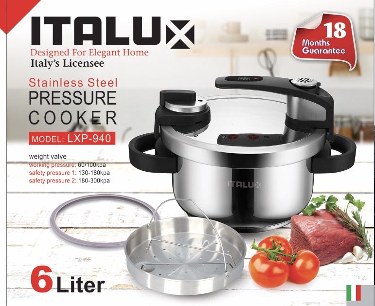 این محصول شامل پک کامل متعلقات زود پز 6 لیتر برند ایتالوکس و پنل دیجیتال همچنین به سنسور های ایمنی، کم مصرف و کم صدا بودن آنها شناخته می شود، تمامی اجزا غیر برقی زود پز 6 لیتر برند ایتالوکس قابلیت شتسشو داشته و به راحتی پاکیزه می شوند.
