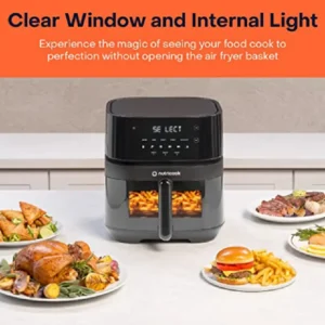 سرخکن نوتریکوک NC-AF306V با ظرفیت ۵.۷ لیتر (تقریباً ۶QT) و توان ۱۷۰۰ وات، برای خانوادههای ۵–۶ نفر مناسب است. مجهز به پنجره شفاف و نور داخلی است تا بتوانید روند پخت را بدون باز کردن درب مشاهده کنید و کیفیت غذا حفظ شود. نمایشگر دیجیتال لمسی، رابط کاربری آسان و ذخیره سه دستور دلخواه، کاربری را بسیار ساده کرده است