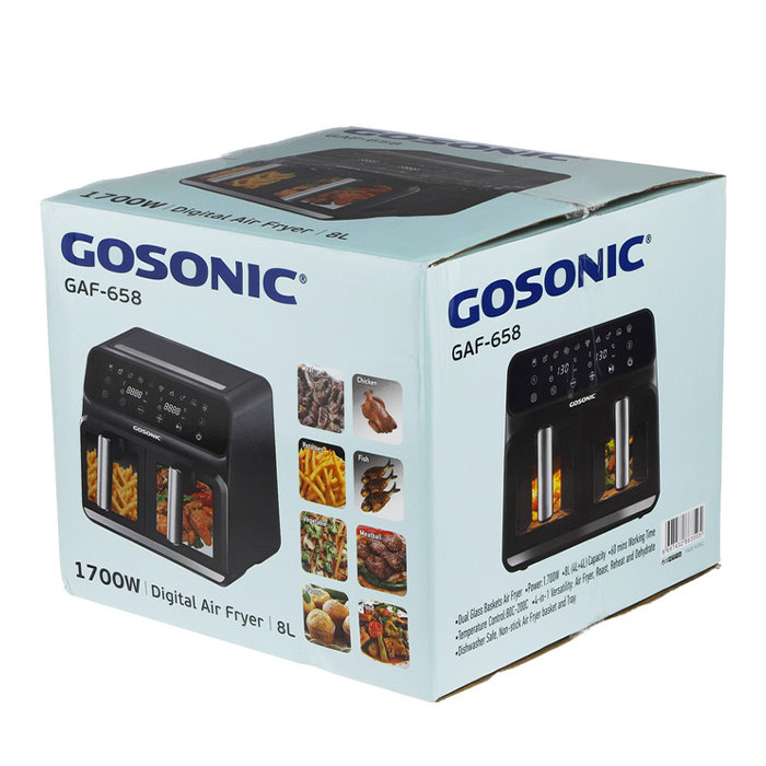 سرخ کن بدون روغن گوسونیک مدل GAF-658 یکی از سرخ کن ها با دو سبد مختلف بوده که می تواند 4 کار کباب پز ، سرخ کن ، میوه خشک کن و گرم کننده را داشته باشد.