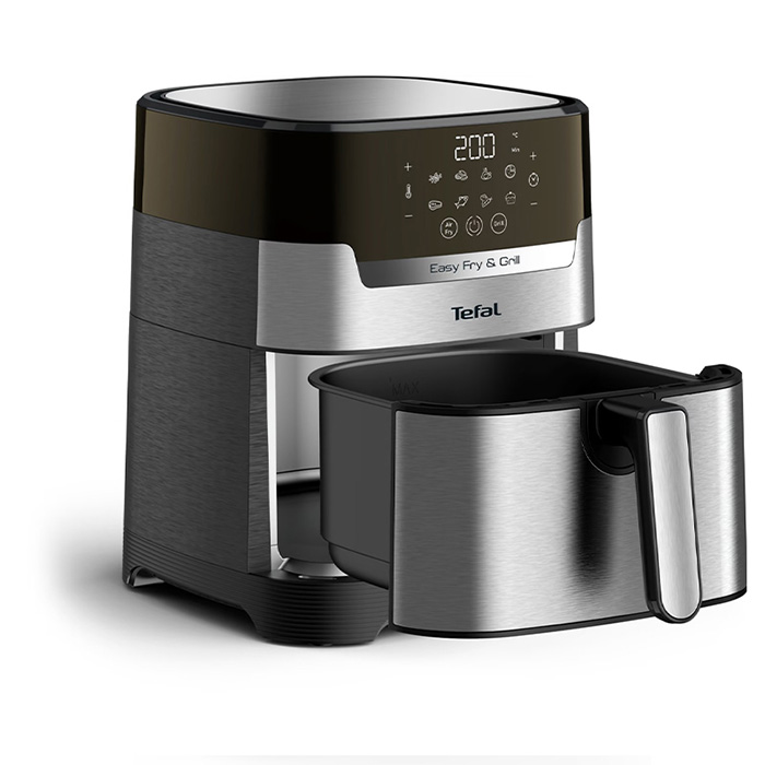 صفحه کنترل دیجیتالی و یک ویژگی تایمر 60 دقیقه ای سرخ کن تفال مدل EY505، دستیابی به نتایج عالی را آسان می کند. به لطف 8 برنامه پخت خودکار ( سیب زمینی سرخ کرده، ناگت، مرغ سوخاری، پیتزا، گوشت، ماهی، سبزیجات، دسر ) می توان طیف وسیعی از غذاها را با سهولت کامل آماده نمود.