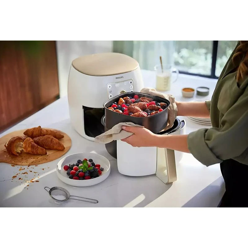 یکی از ویژگیهای برجسته این مدل، فناوری Airfryer است که به شما امکان میدهد غذاها را با هوای داغ به جای روغن سرخ کنید. این فناوری باعث میشود غذاها با طعمی مشابه سرخشده اما با میزان چربی بسیار کمتر آماده شوند. به این ترتیب، شما میتوانید از خوردن غذاهای سرخشده لذت ببرید، بدون اینکه نگران چربی و کالری اضافی باشید.