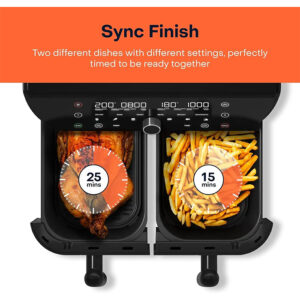 ظرفیت کلی این هواپز 8.5 لیتر بوده که به طور مساوی بین دو سبد هرکدام به ظرفیت 4.25 لیتر تقسیم شده است. گفتنی است دیگر امتیاز ارزشمند سرخ کن نوتریکوک مدل NCAFD185 امکان کنترل دما و زمان برای هر سبد به صورت جداگانه است.