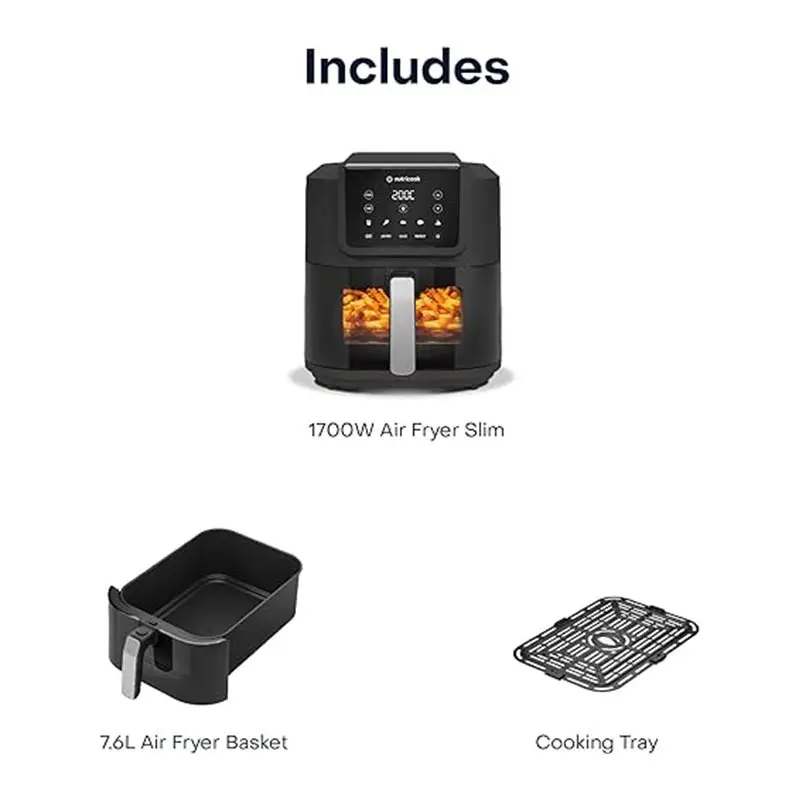 سرخکن نوتریکوک مدل AFS200 با ظرفیت XL، طراحی باریک و فناوری گردش هوای گرم، انتخابی عالی برای پخت سالم و کمچرب غذاهای متنوع خانگی است. دارای ۸ برنامه پخت و گارانتی ۱۸ ماهه آریاکیش.