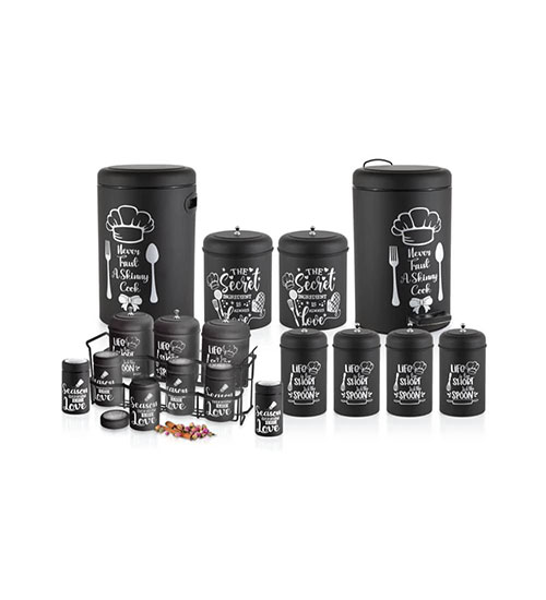 سرویس آشپزخانه 18 پارچه بلانزو مدل 4045 از 18 پارچه شامل سطل پدالی آرام بند، سطل برنج متوسط ، سطل قند و شکر، جا حبوباتی، پا سماوری است.