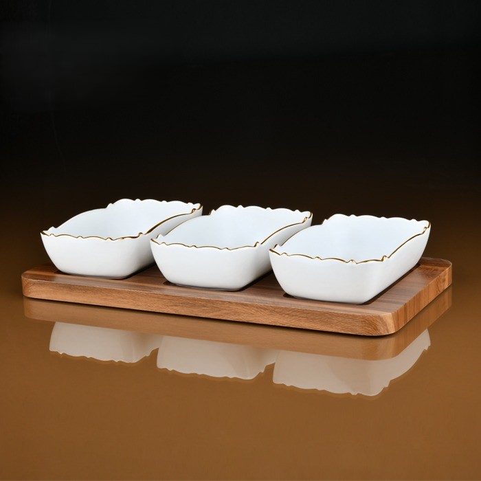 می توانید سرویس اردوخوری لیمون مدل مستطیل موج سه خانه برای سرو کشک بادمجان، شله زرد، سالاد ماکارونی و غیره استفاده کنید.از آنجا که پیش غذا به مقدار کم تهیه می شود بنابراین نیاز نیست از ظروف بسیار گود یا بزرگ استفاده کنید. تنها نکته مهمی که باید بدان توجه داشته باشید دسترسی همه افراد به پیش غذای تهیه شده است.