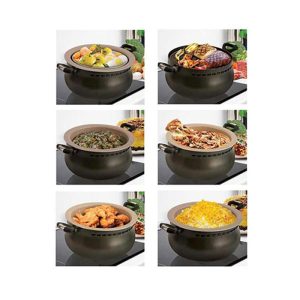 یکی از ویژگی های بارز سرویس غذاپز ناخ مدل 10 پارچه 8 نفره آروشا پخت با اجاق گاز و همچنین پخت با زغال و آتش می باشد.از دیگر قابلیت های سرویس غذا پز ناخ میتوان به پخش یکنواخت حرارت از طریق محفظه تنوری به تمامی سطوح غذا اشاره کرد.