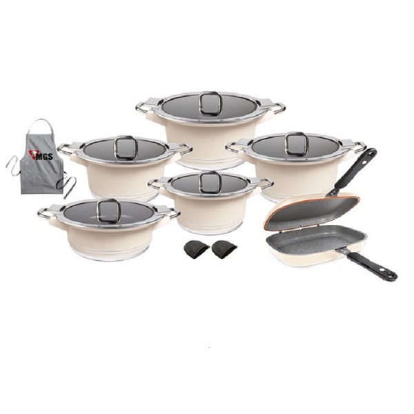 سایز و ابعاد این سرویس قابلمه برای استفاده روزمره و میزبانی مناسب است و میتوانید انواع غذاها را در آن پخت و سرو کنید. قابلمه MGS طرح جرمنی B دارای پوشش ضد چربی بوده و باعث میشود غذاهای پخته شده بهطور یکنواختی و بهتری پخته شود. همچنین با توجه به طراحی زیبا و جذاب آن، میتوانید در میزبانیها و جشنها از آن بهعنوان یک قطعه تزئینی استفاده کنید و خانهتان را تزئین کنید. بنابراین، سرویس قابلمه MGS طرح جرمنی B با طراحی زیبا، کیفیت بالا و عملکرد برتر، گزینهی بسیار مناسبی برای استفاده خانهها و رستورانها میباشد.
