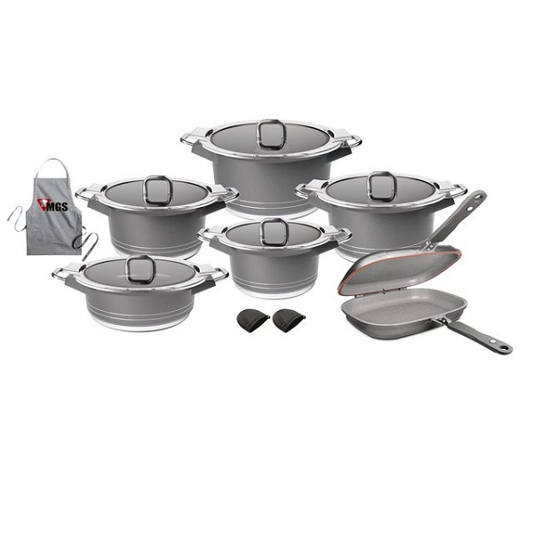 سرویس قابلمه MGS طرح جرمنی B یک سرویس قابلمه بوده که به طراحی جرمنی معروف است. این سرویس قابلمه از مواد با کیفیت و با دقت بالا ساخته شده است و دارای طرحی متفاوت و زیبا است که به دکوراسیون خانه شما زیبایی و شیکترین شکل ممکن را میدهد. سرویس قابلمه MGS طرح جرمنی B شامل قابلمه اصلی با درب و دستگیره، ظرف پخت، دستگیره دمپایی و قاشق و چنگال برای سرو غذا میباشد.