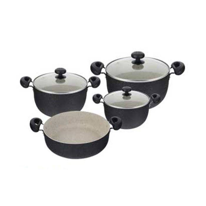 پوشش گرانیتی شرکت گریبلون آلمان در سرویس پخت و پز 7 پارچه کاج تفلون مدل دالیا استفاده شده که به علت عدم استفاده از سرب و کادمیوم و مواد شیمیایی مضر، بسیار با محیط زیست سازگار می باشد و برای پخت و پز و دوری از مشکلات گوارشی مناسب است.