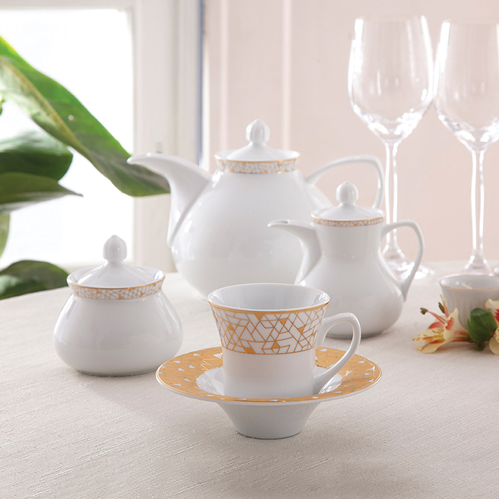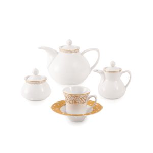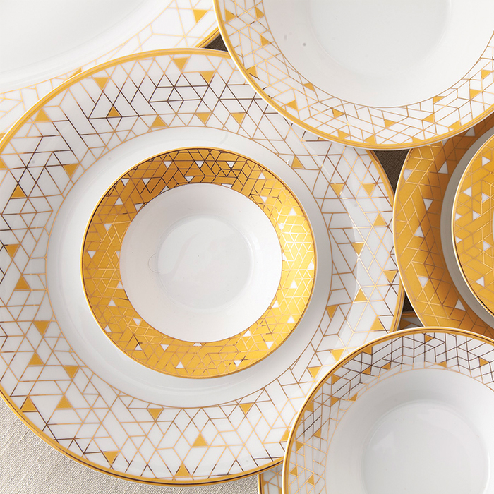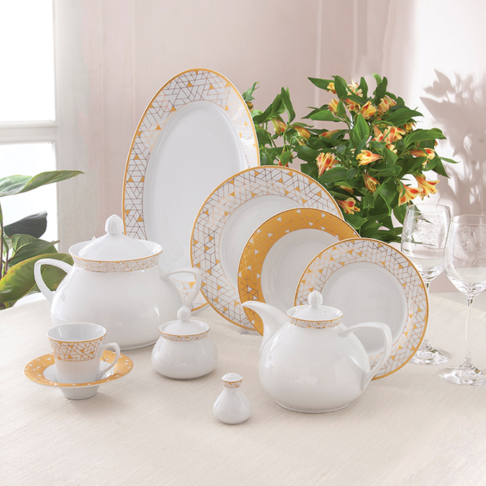 سرویس چینی 108 پارچه زرین ژئومتریکال طلایی