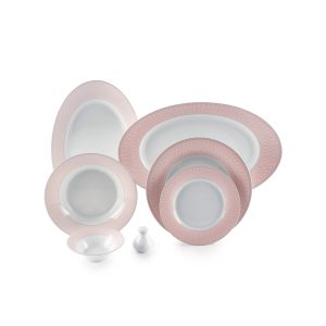 سرویس چینی 108 پارچه زرین ژانتی صورتی برای پذیرایی و سرو غذا به تعداد 12 نفر تهیه شده و تمام ظروف اساسی و ضروری برای میز غذا را در خود دارد.