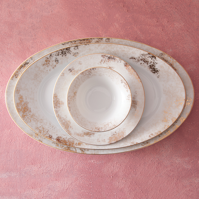 سرویس چینی 108 پارچه زرین کلودیا از سری شهرزاد با طراحی جذاب و پتین خود که به تازگی در این سال جاری طراحی و تولید شده است مناسب برای پذیرایی از دوازده نفر است و با این طراحی منحصر به فرد هارمونی جذابی به این طرح داده است.