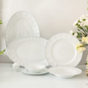 سرویس چینی 29 پارچه زرین داتیس سرمه ای برای پذیرایی و سرو غذا به تعداد 6 نفر تهیه شده و تمام ظروف اساسی و ضروری برای میز غذا را در خود دارد.