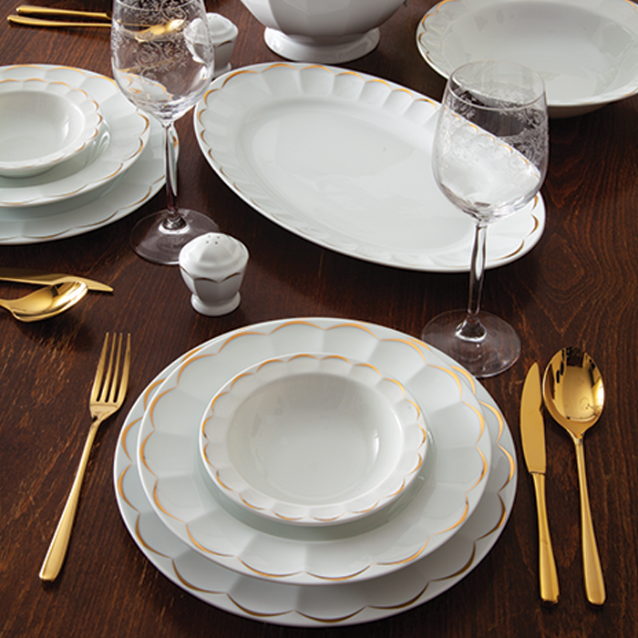 سرویس چینی 29 پارچه زرین نارسیس طلایی برای پذیرایی و سرو غذا به تعداد 6 نفر تهیه شده و تمام ظروف اساسی و ضروری برای میز غذا را در خود دارد.