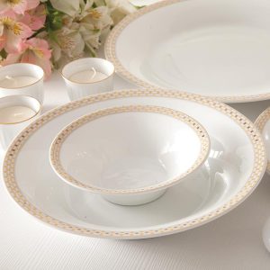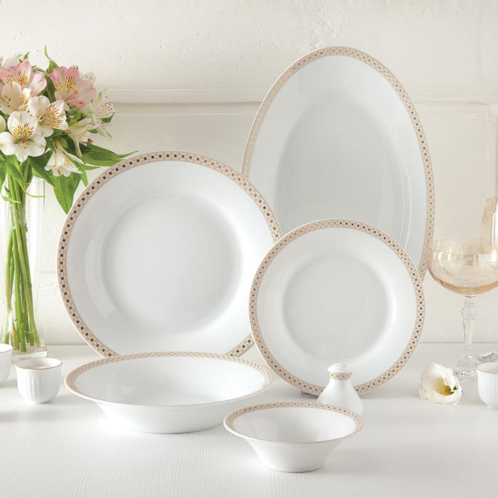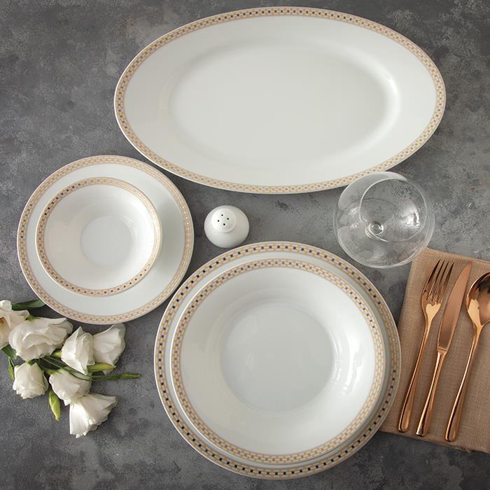 سرویس چینی 35 پارچه زرین اسکوآیر برای پذیرایی و سرو غذا به تعداد 6 نفر تهیه شده و تمام ظروف اساسی و ضروری برای میز غذا را در خود دارد.